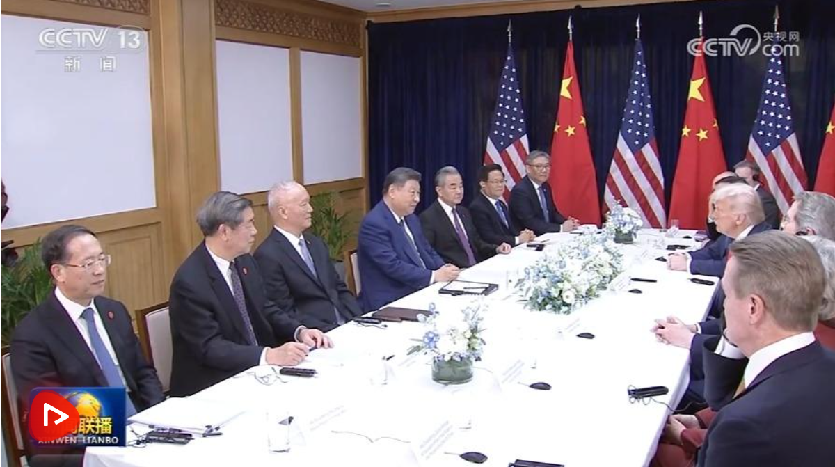 當地時間10月30日,國家主席習近平在釜山同美國總統特朗普舉行會晤。